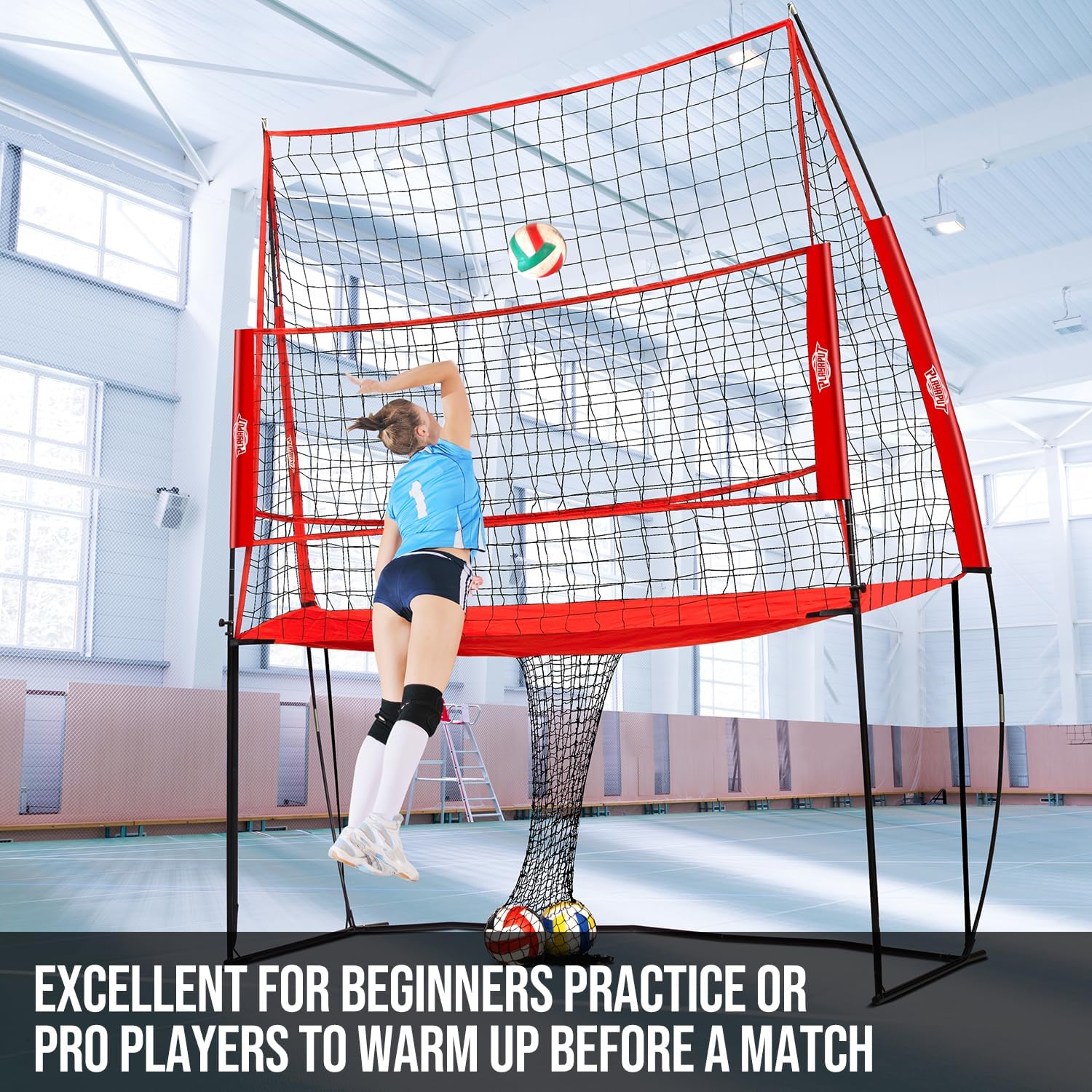 Hit the ball into a rebounder volleyball net to improve hand-ball contact and arm swing needed to hit the ball correctly. The net is also great for using as a setter. After hitting the ball into the net, treat the rebound as a set and react accordingly.